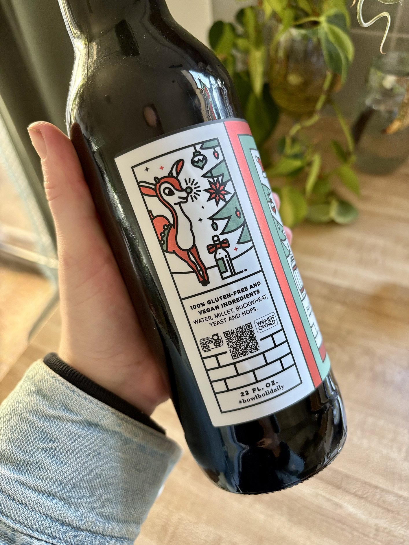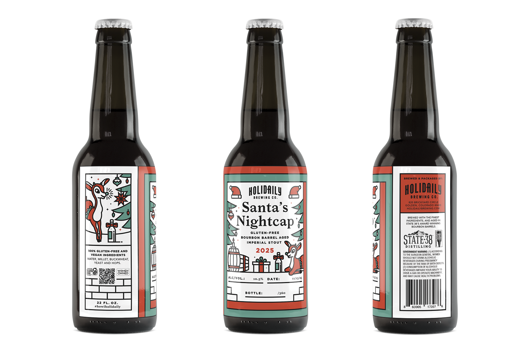 An annual custom-illustrated collector’s bottle label design for a holiday beverage collaboration